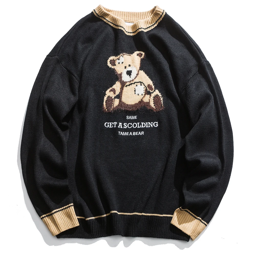 OSCN7 свитера с вышитым забавным медведем для мужчин осень высокая