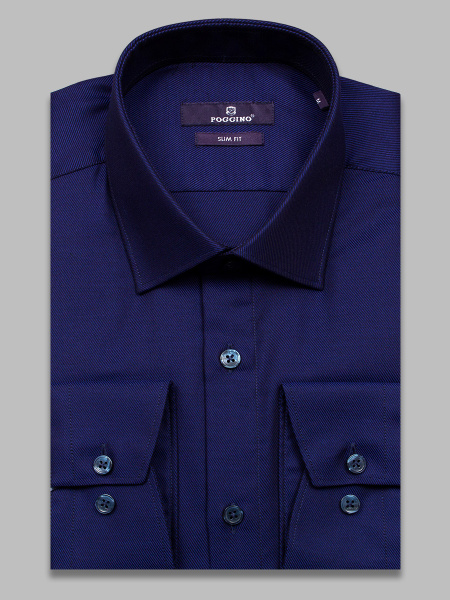 Рубашка Мужской Poggino темно-синий Длинный Хлопок, Натуральные