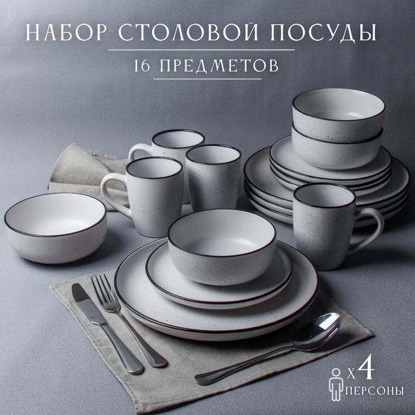 Набор посуды из керамики 16 предметов на 4 персоны