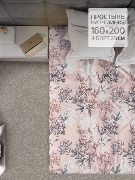 Простыня Белорусский лен на резинке, 160x200, коричневый купить по