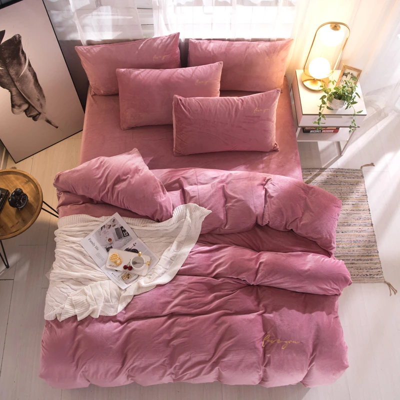 Высокое качество сплошной цвет кристалл Бархат Пододеяльник Простыня