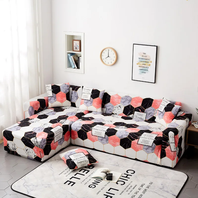 Геометрический эластичный чехол для дивана в форме L, секционный