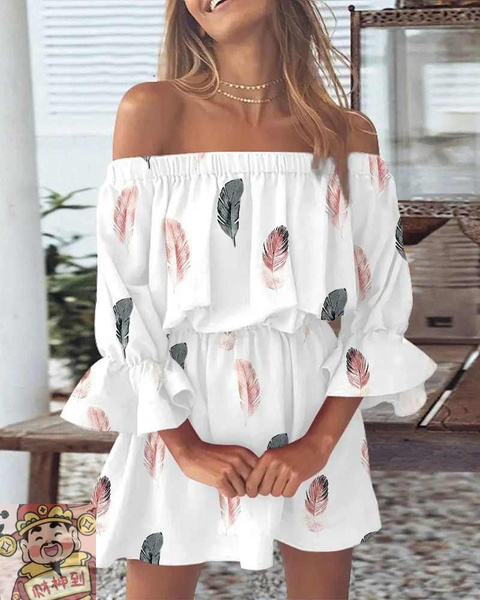Платье с принтом с открытыми плечами, Женский, Лето, размер 52