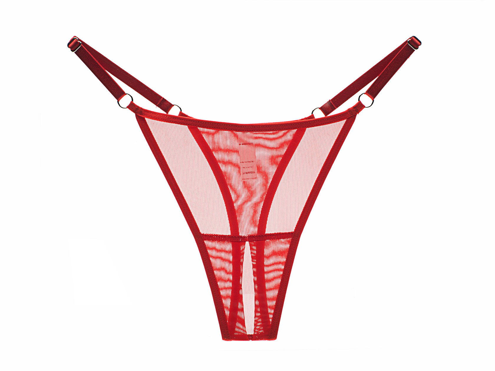 Трусики женские сетка красные танга на регуляторах с доступом. Собери
