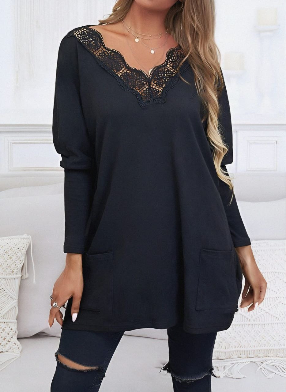 Дамска свободна туника с дантела J720441 черен