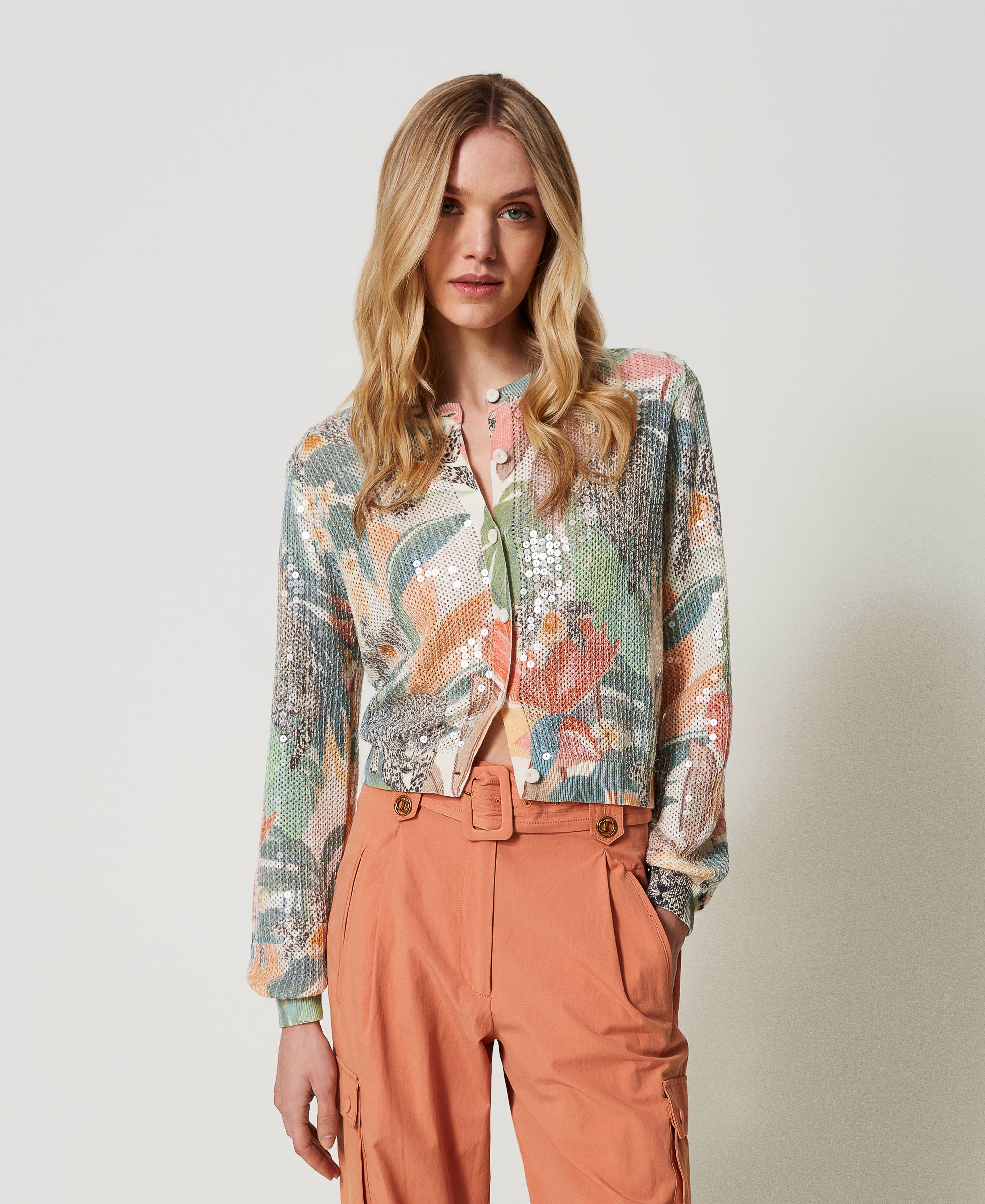 Трикотажный жакет с цветочным принтом и пайетками 241TT3282 TWINSET